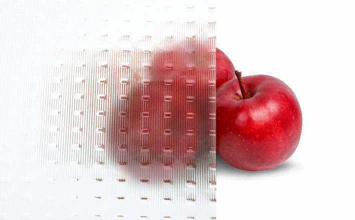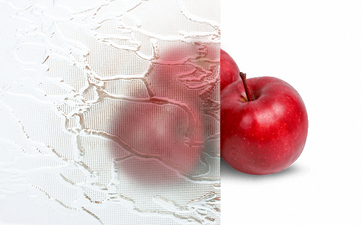 Decorated sheet glass creates partial light diffusion and limits through visibility.
