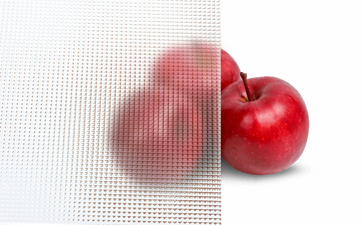Patterned sheet glass has a repeating convex relief pattern on one, and sometimes on both surfaces, creating partial light diffusion and limiting see-through visibility. The light transmittance coefficient of colorless glass is 75-80%, while the coefficient of colored patterned glass depends on the glass composition, pattern type, color intensity, ranging from 30-65%. It is not recommended to use patterned glass in dusty environments.