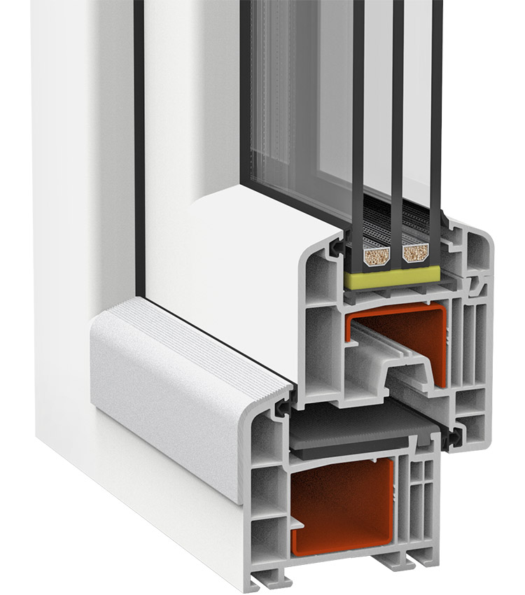 Threshold overlays are attached to the frame using mechanical fastenings or adhesive. The material used to make the thresholds is aluminum. The threshold is painted in one of the standard RAL colors with paint that is resistant to abrasion and scratches. The threshold fits organically into modern architectural design, and its quality characteristics remain unchanged for decades.