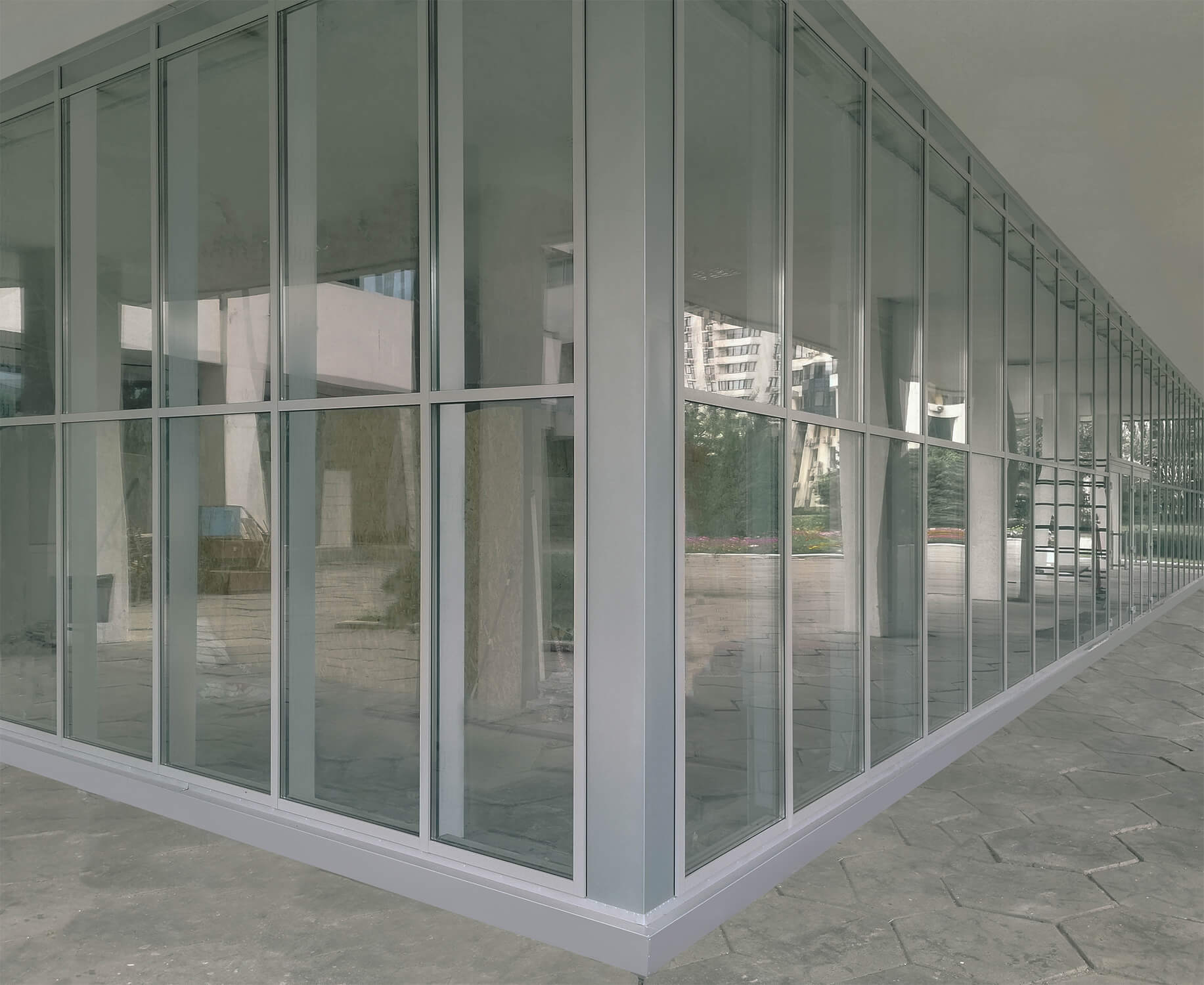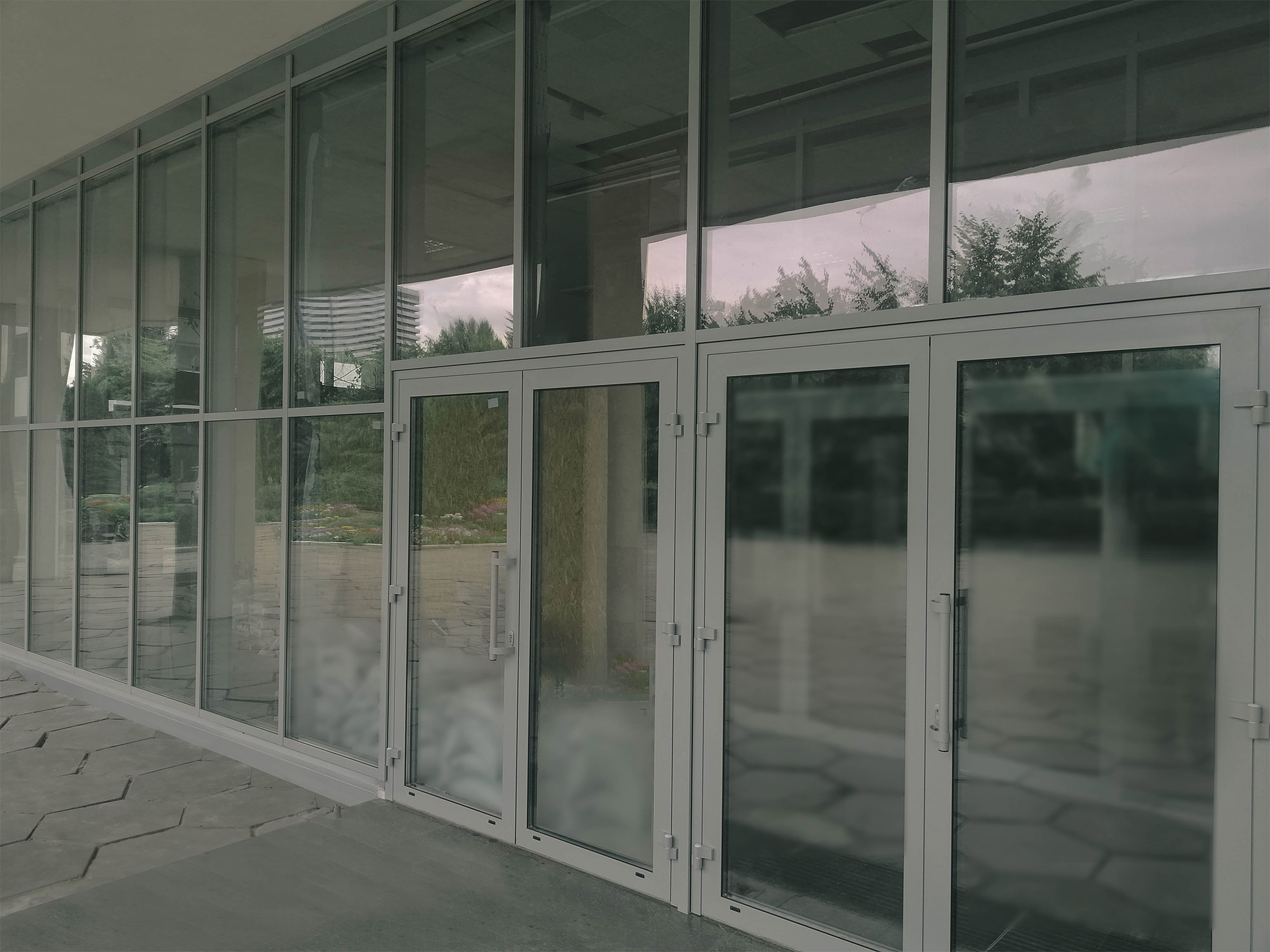 At the facility - the educational building of Taras Shevchenko National University in Kiev - panoramic large-format doors are installed, integrated into the post-and-rail facade.The aluminum profile is powder-coated in white.