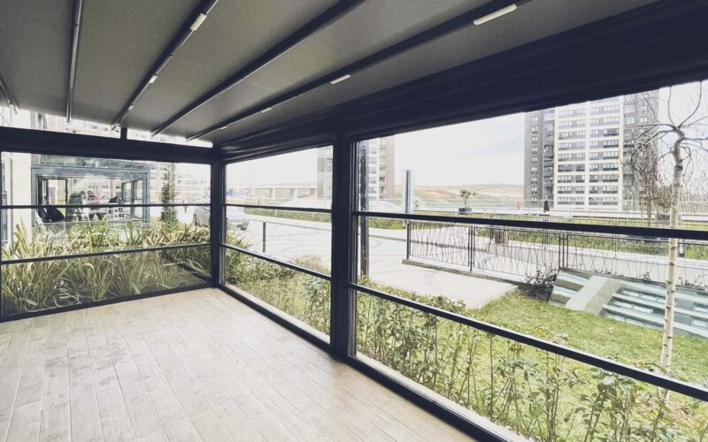 Framex Wind Breaker GL systems are used for arranging verandas and uncovered terraces. The movable glass is operated manually with minimal effort. By raising it to the desired height, a comfortable atmosphere is created for the user.