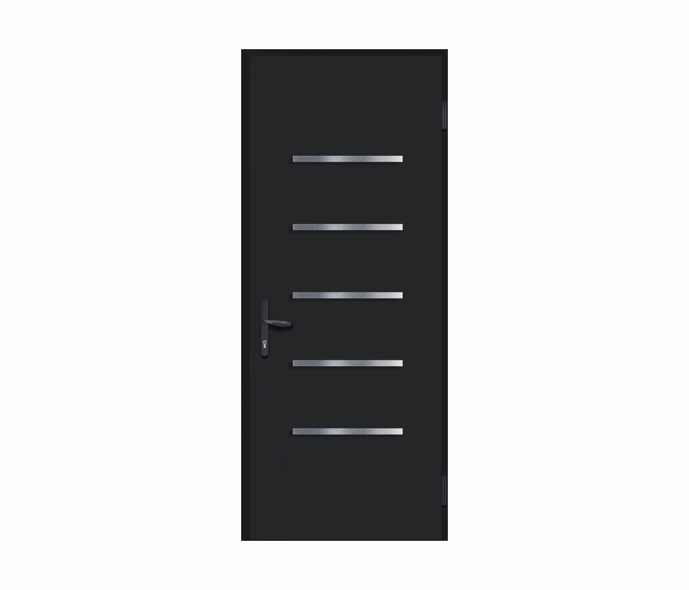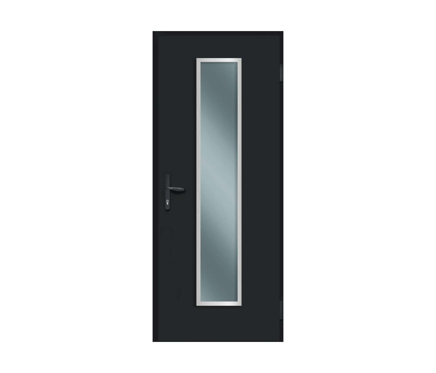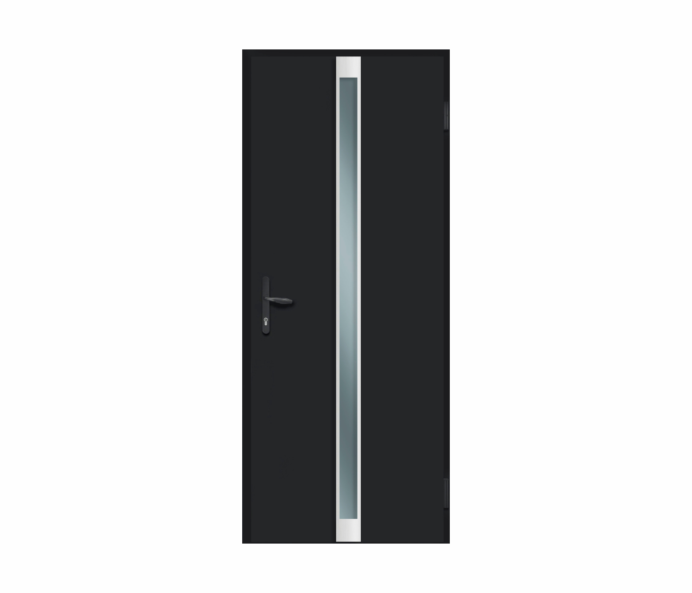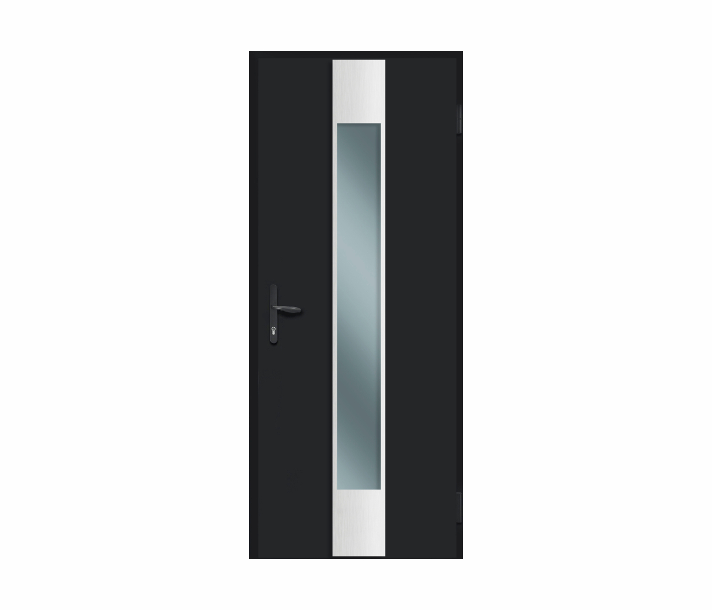 Entrance doors with improved sandwich panels, glued-in double-glazed windows and stainless steel moldings.