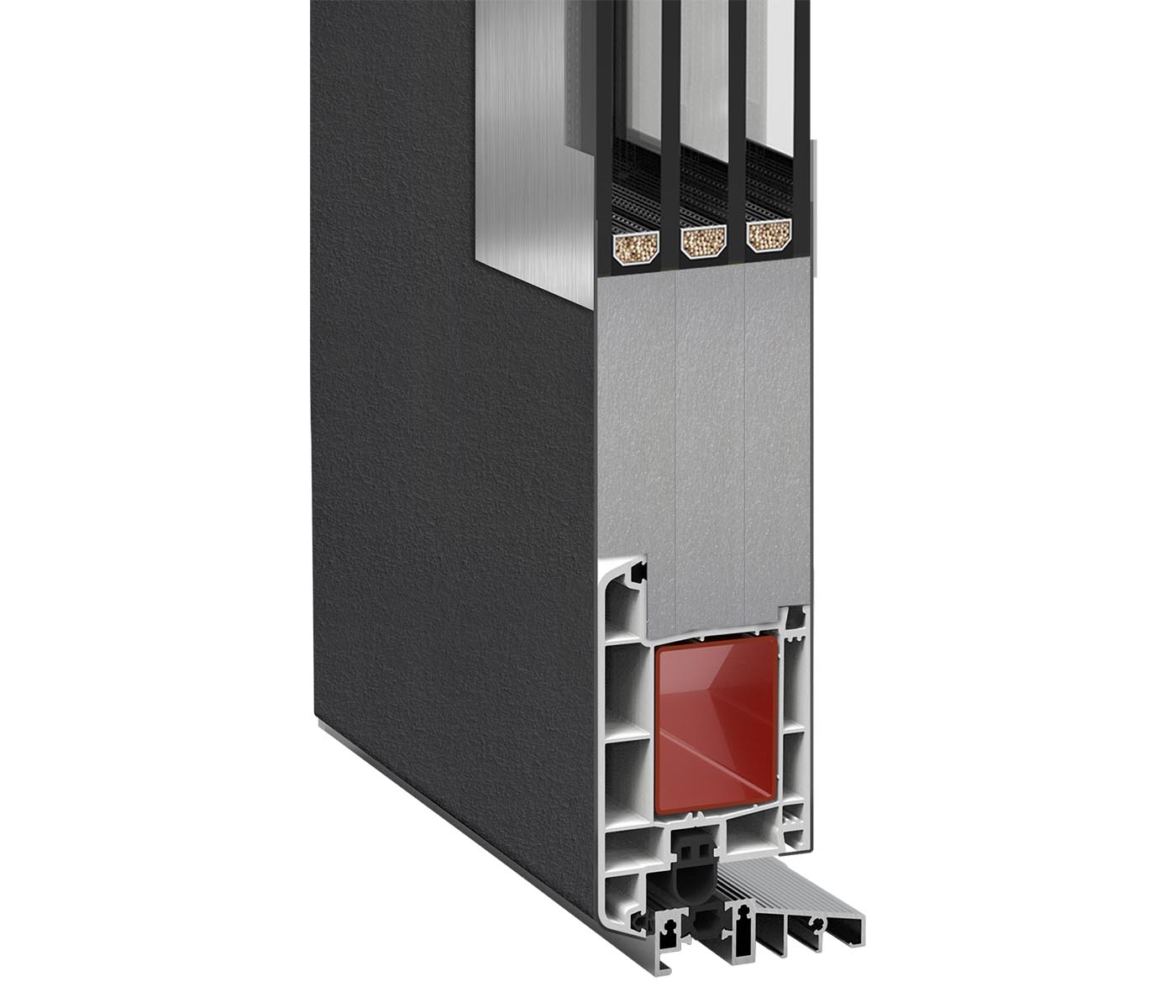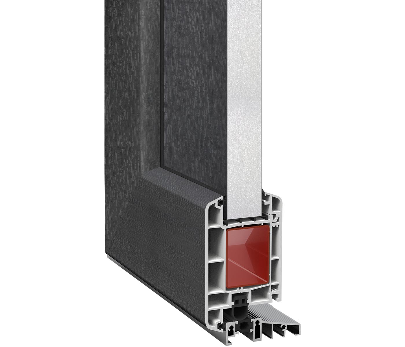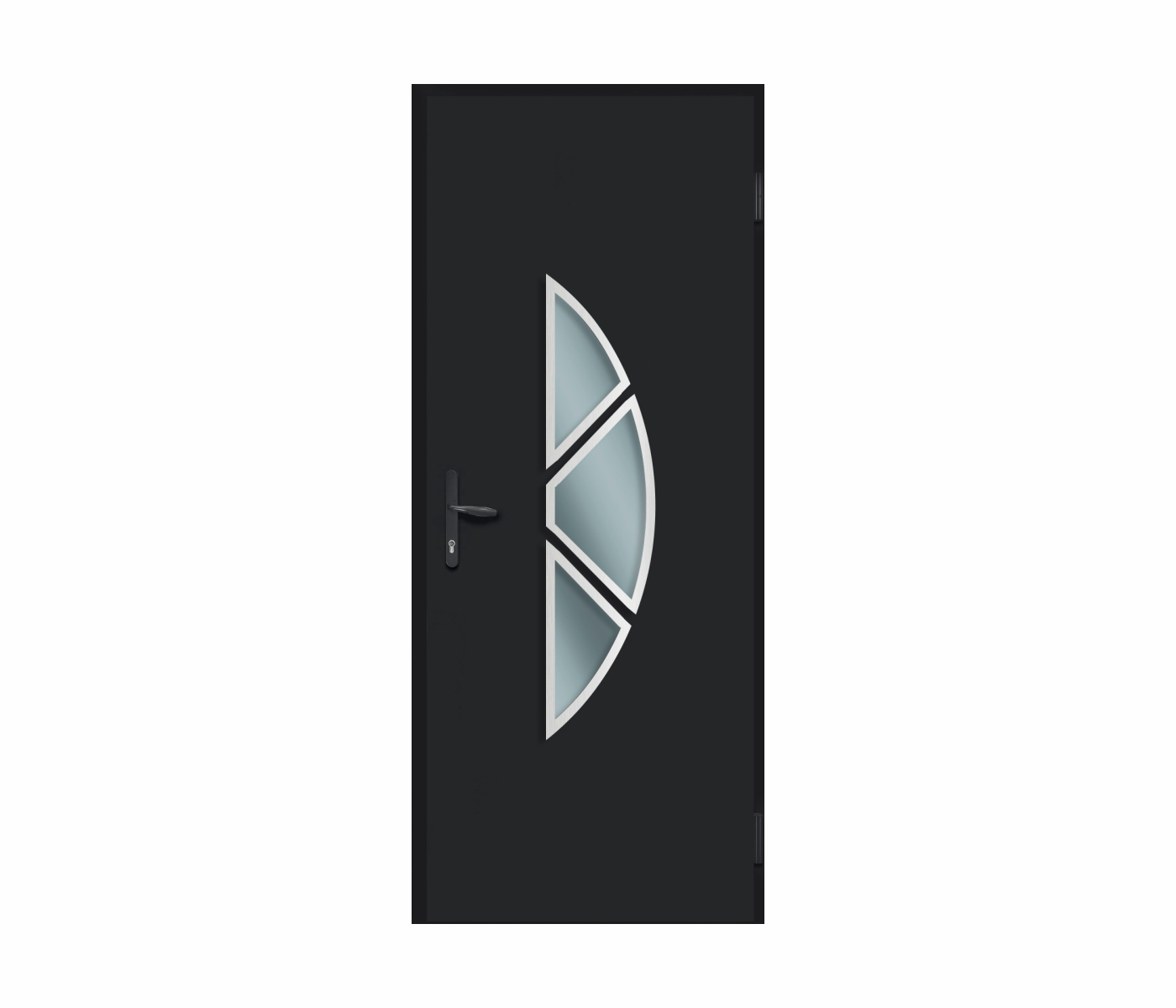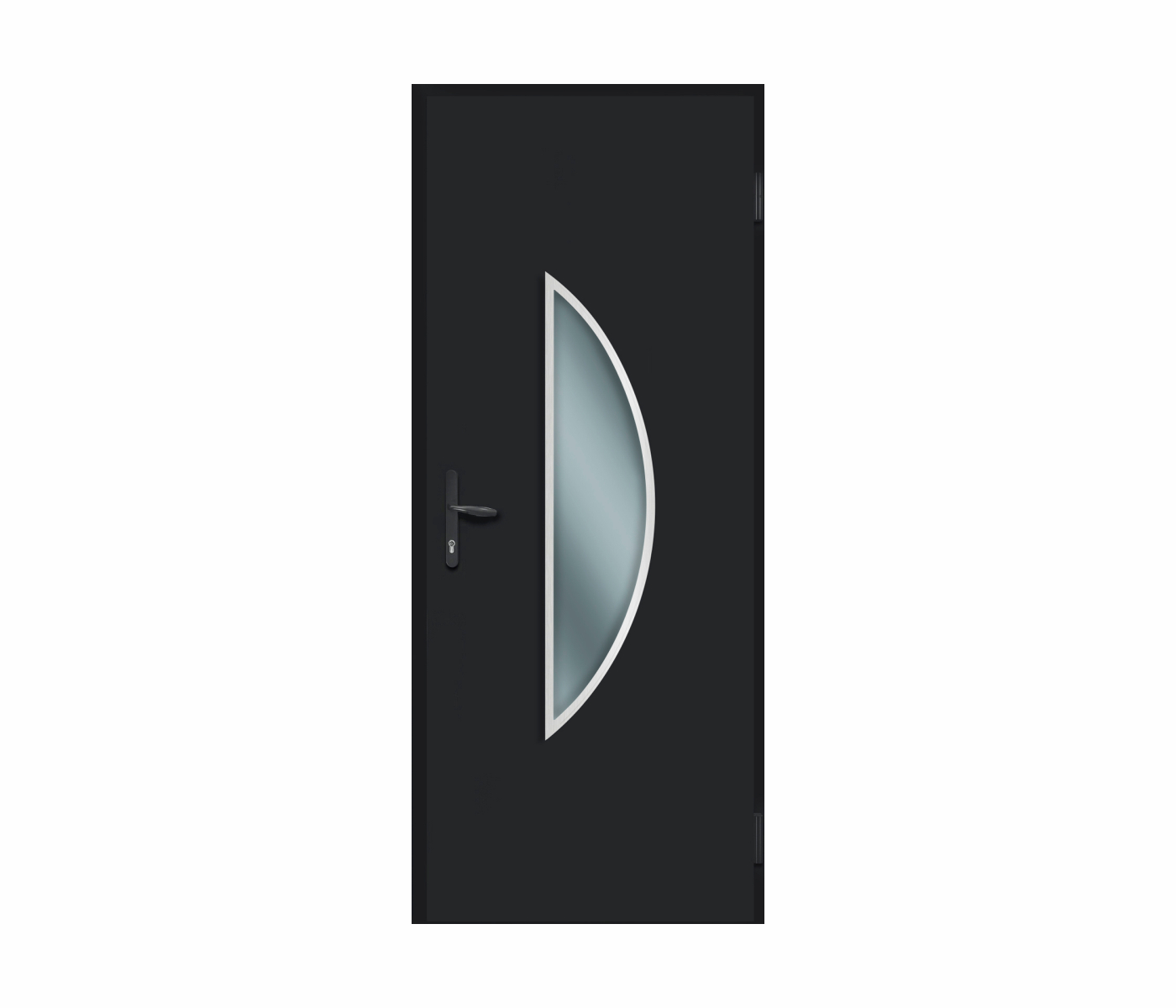 Entrance doors with improved sandwich panels, glued-in double-glazed windows and stainless steel moldings.